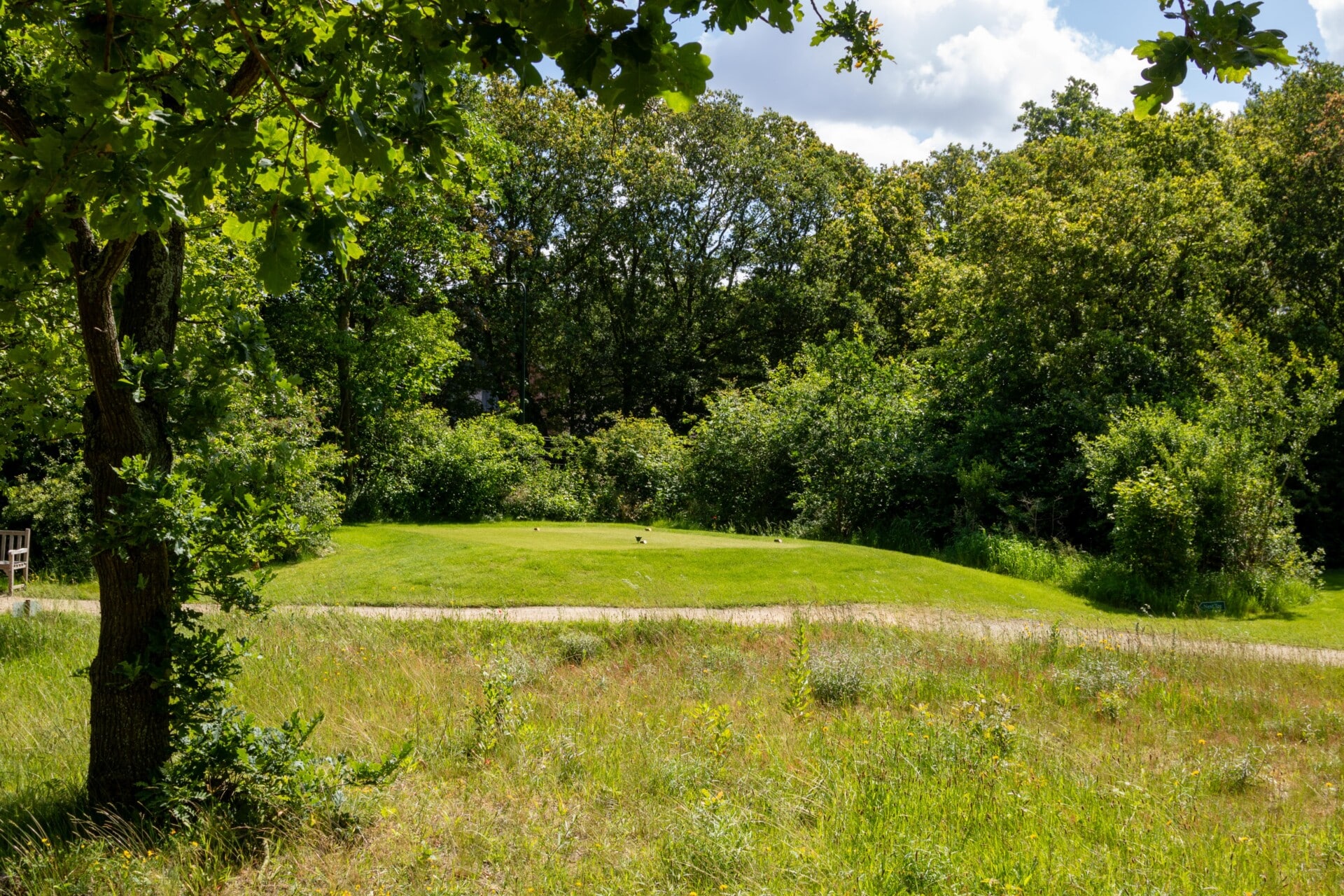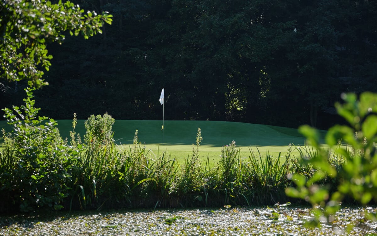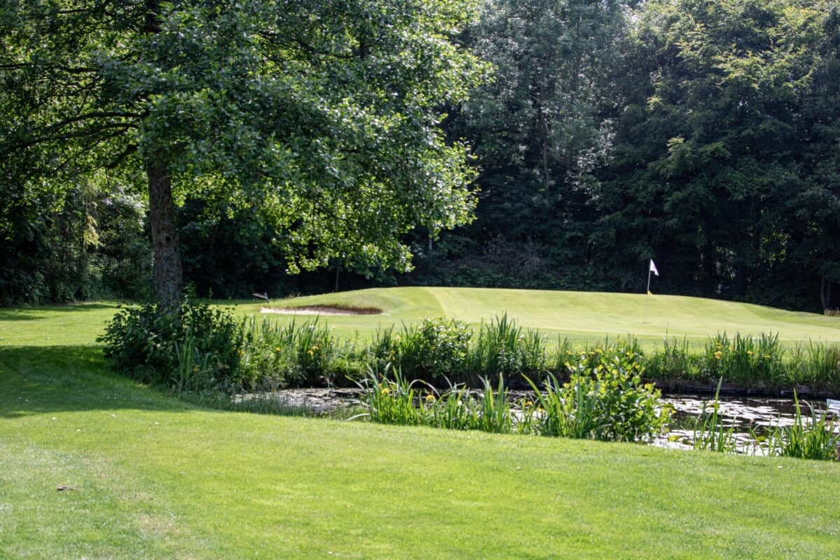 Vanaf de verhoogde tee worden de uitdagingen meteen duidelijk. Een vijver op 85 meter in de lijn naar de green, daarnaast is de green beschermd door twee bunkers. De green zelf heeft twee niveaus met een hoogteverschil van net geen meter. Het hoge niveau is klein en moeilijk aanspeelbaar. Bij de afslag heeft hole 7 voorrang. Op zich een rechttoe rechtaan hole, maar schijn bedriegt. Het hek links langs de hole is out of bounds, de green is lastig aanspeelbaar en wordt beschermd door een bunker rechts voor. De verhoogde green zorgt voor veel uitdaging om de bal erop te houden.