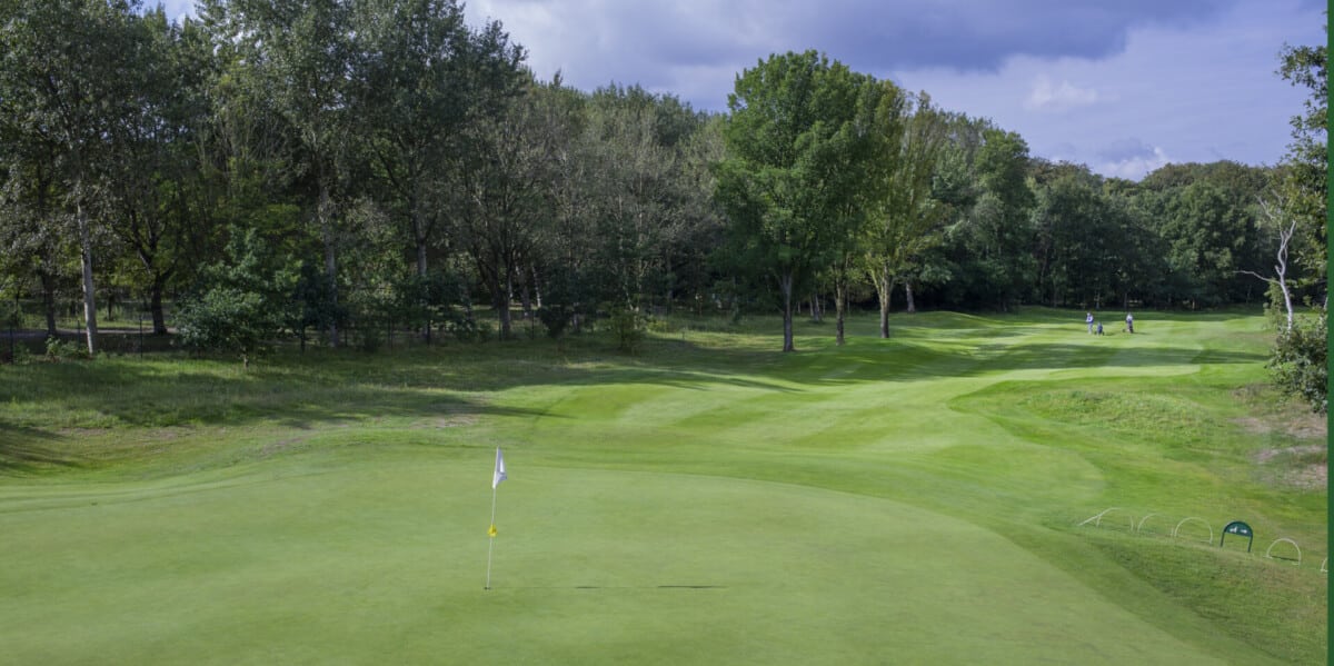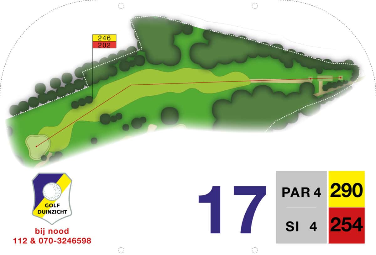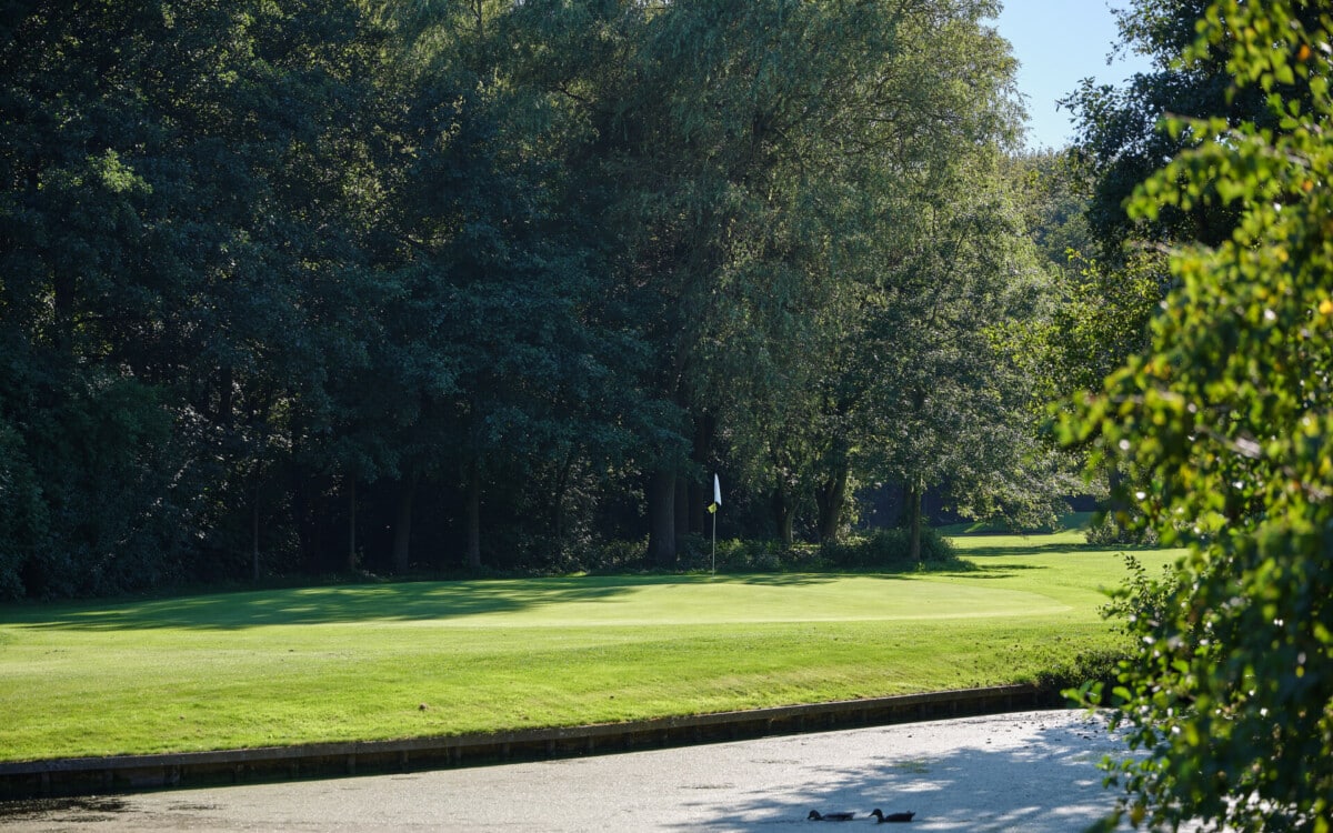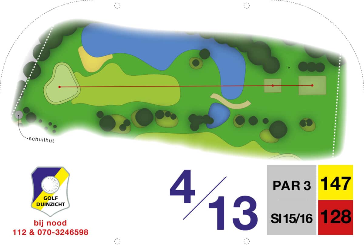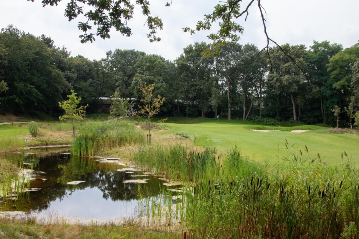 De eerste par 4 met niet voor niets een stroke index 1 en 2. Een smalle fairway met zowel links als rechts out of bounds. De fairway bunker op rechts is tactisch geplaatst, daarnaast ligt de green tegen de linker out-of-boundslijn aan en is verder beschermd door een vijver rechts voor op 195 meter van de tee. Dan is er nog een kleine potbunker links voor de green. Al met al een zeer uitdagende hole die een goede strategie vergt.