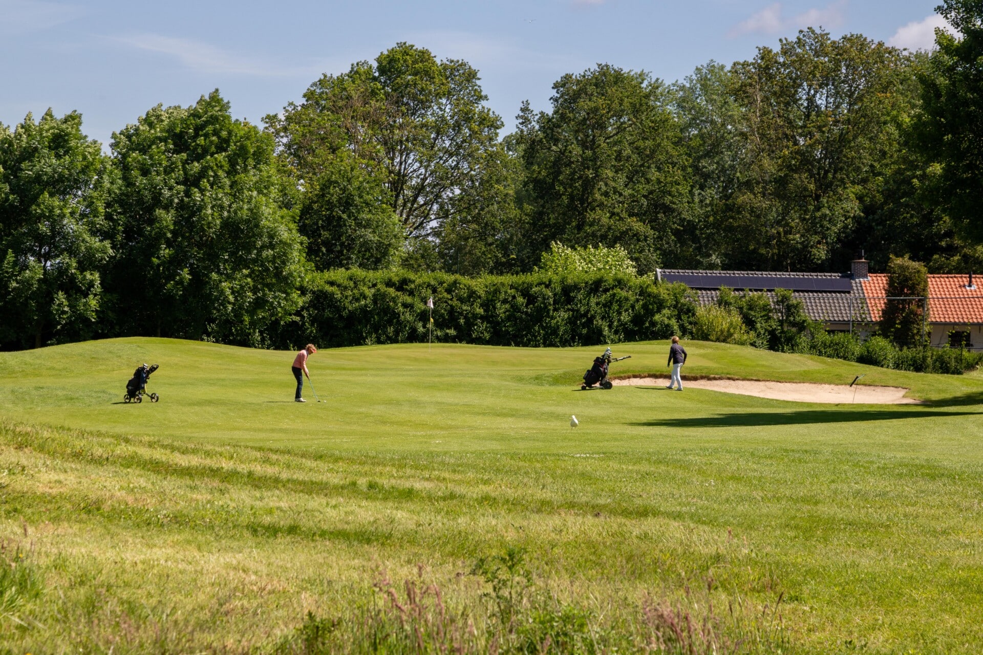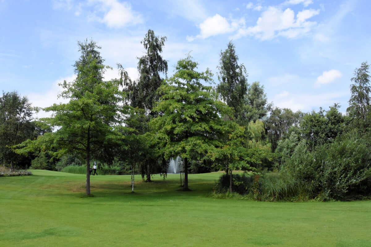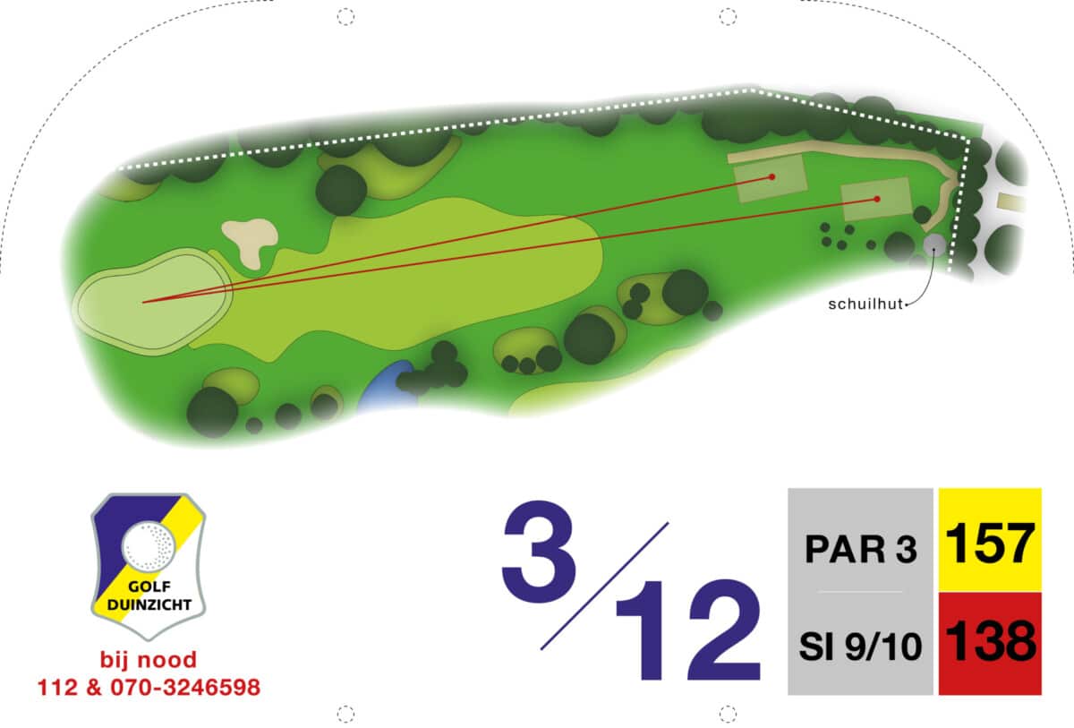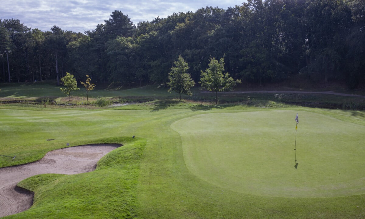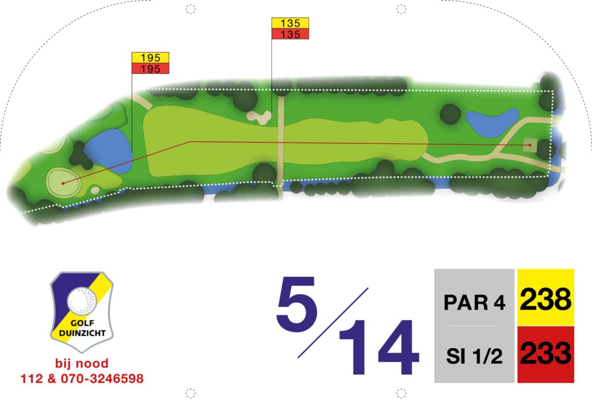De eerste par 4 met niet voor niets een stroke index 1 en 2. Een smalle fairway met zowel links als rechts out of bounds. De fairway bunker op rechts is tactisch geplaatst, daarnaast ligt de green tegen de linker out-of-boundslijn aan en is verder beschermd door een vijver rechts voor op 195 meter van de tee. Dan is er nog een kleine potbunker links voor de green. Al met al een zeer uitdagende hole die een goede strategie vergt.